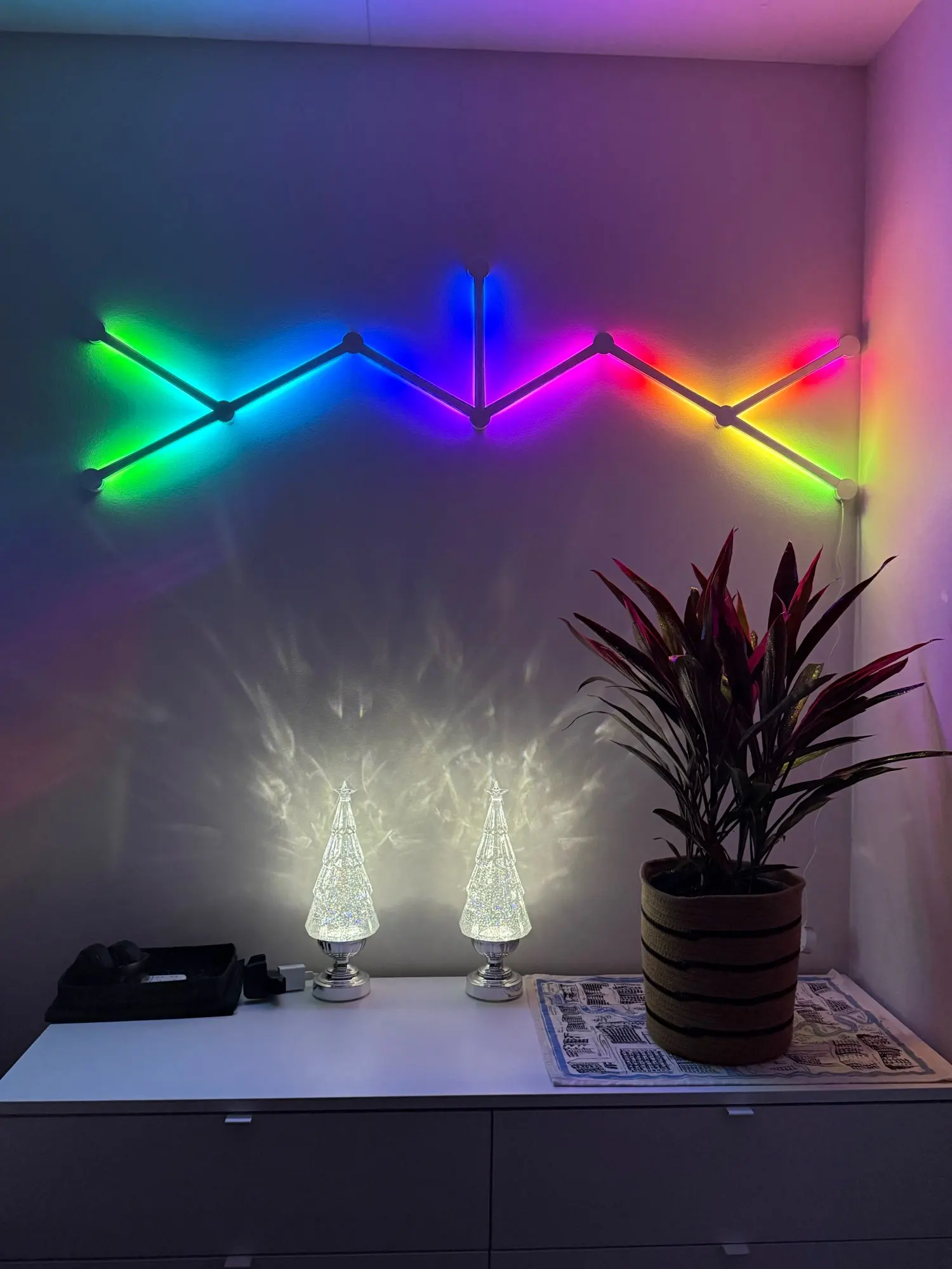 Create your perfect lighting setup with a modular design that adapts to your space, dynamic colors that set the mood, easy app control and voice commands for convenience, and music sync for an immersive experience—perfect for gaming, relaxing, or transforming any room.